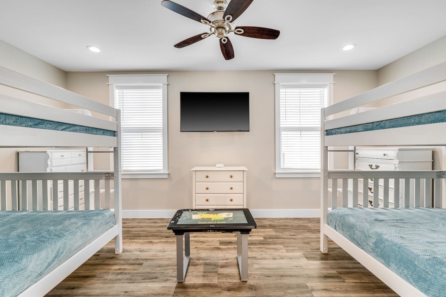 This custom-designed Coastal Craftsman Beach House is more than just a vacation rental—it’s an experience! Designed to host up to 18 lucky guests, this home features a private heated pool (heated for an additional fee) and two luxurious master suites with king beds and spacious private bathrooms. 🌟 Why You’ll Love It Here 🌟 ✅ Room for Everyone! Sleeps up to 18 guests ✅ Private Heated Pool! (heated for an additional fee) ✅ 3-Minute Walk to the Beach—sand, sun & surf await! ✅ 5 King Beds + 5 Queen Beds—plenty of space to spread out! ✅ Arcade Games in the Bunk Room—fun for all ages! ✅ Game Table for the Kids—because family game nights are a must! ✅ Dedicated Parking + Additional Parking at County Pier ✅ 2600 sq. ft. of Coastal Comfort in the heart of Panama City Beach 💤 Sleep Like a Dream 🛏️ Master Suite 1: King Bed + Ensuite Bathroom (Bottom Floor) 🛏️ Master Suite 2: King Bed + Ensuite Bathroom (Top Floor) 🛏️ Bedroom 3: King Bed + Shared Bathroom (Bottom Floor) 🛏️ Bedroom 4: King Bed (Top Floor) 🛏️ Bedroom 5: Unique set up King-over-Queen Bunk Bed (Top Floor, Sleeps 4) 🛏️ Bedroom 6: 2 Queen-over-Queen Bunk Beds (Top Floor, Sleeps 8) ⚽ Calling All Sports Fans! In town for a tournament? Ocean Waves is perfectly located between the Publix Sports Complex and Frank Brown Park, home to world-class sporting events. 🌊 More Nearby Fun! 🎢 Shipwreck Island Water Park—only 2 blocks away! 🎣 Fishing at the County Pier—just a short walk! 🏄 Water Sports, Dolphin Tours, and More! 🚫 House Rules (Keep It Fun & Drama-Free!) 🚫 No Pets Allowed—We love furry friends, but they gotta sit this trip out! A $250 fee applies if pets are brought in. 🏊♂️ Pool Maintenance happens twice a week during peak season and once a week during the off-season. Heavy rainstorms? We’ll clean it as soon as possible! Ready to trade everyday stress for ocean breezes, poolside vibes, and coastal adventures? 🌴 Book your stay at Ocean Waves today! 🌊✨