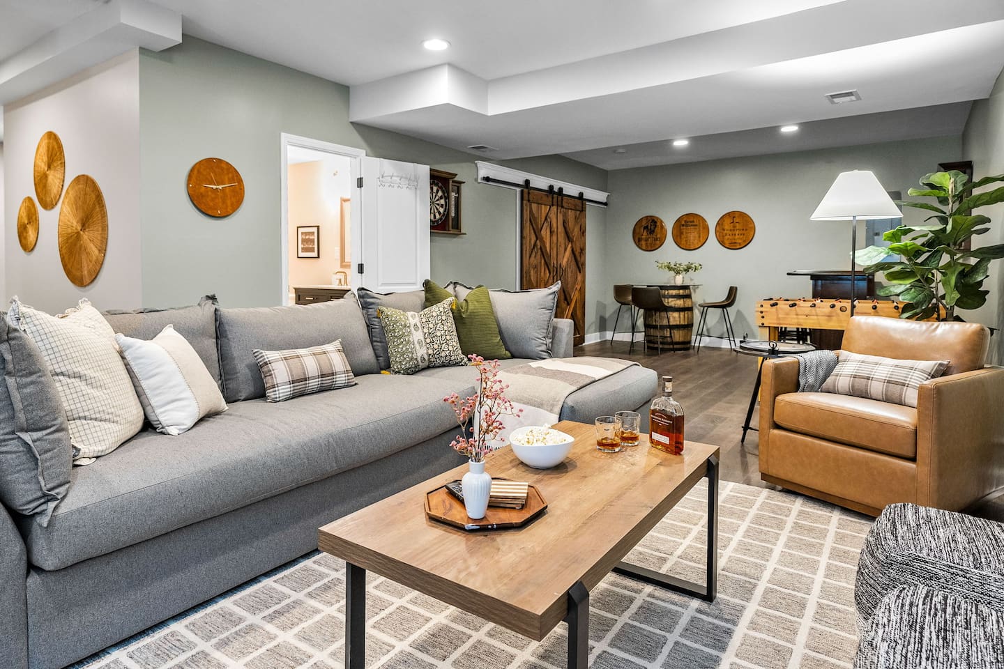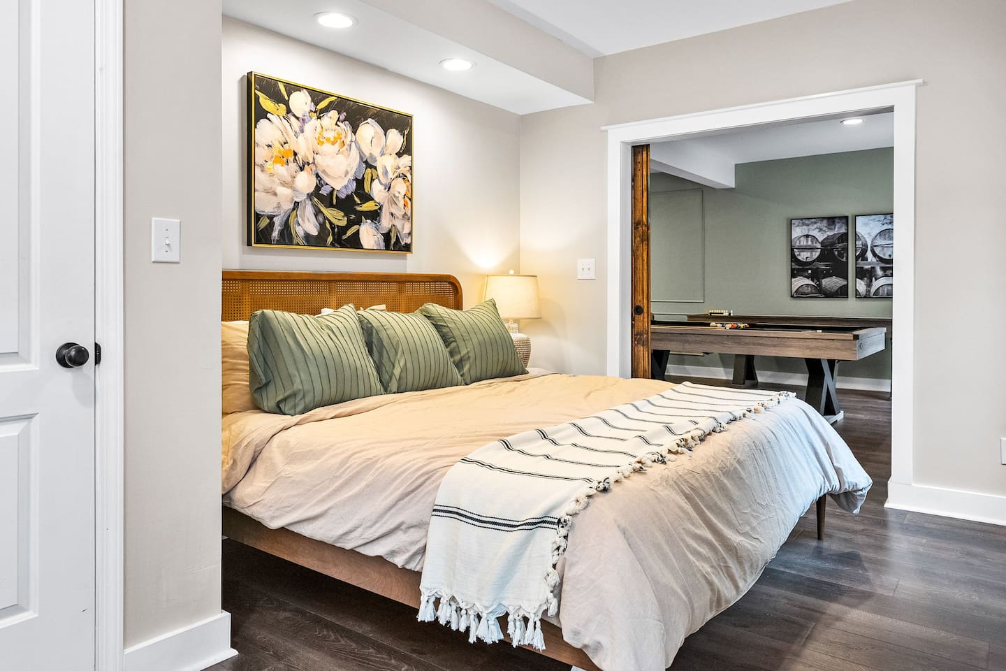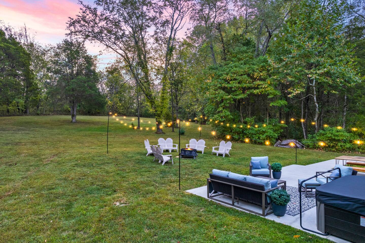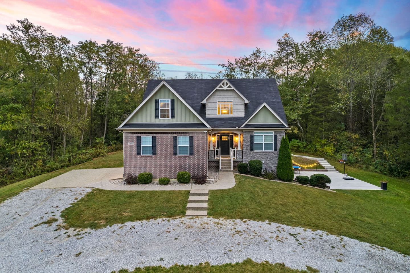 Welcome to The Nest at Bluegrass Acres! 90k worth of new luxury furnishings [Every bit of furnishing (Bedding, Games, All Furnitures) is brand new]!!! Embrace the quintessential Kentucky experience with our enchanting 5-bedroom, 4-bathroom property, nestled on an expansive 20-acre estate, perfectly poised for both Bourbon trail exploration and the thrill of the Derby. Just a short drive from the Borbon distilleries, this exquisite home offers a harmonious blend of comfort and entertainment. Each of the five meticulously designed bedrooms ensures a restful night's sleep, while the 3.5 well-appointed bathrooms offer convenience and privacy for all guests. What truly distinguishes this property is its enticing game room, where you can challenge friends and family to spirited rounds of billiards, shuffleboard, or board games. It's the ideal space to unwind and create cherished memories after a day of Bourbon tastings and Derby festivities. Outside, the vast 20 acres of land beckon with scenic trails that wind through lush woods and open pastures. Whether you crave a peaceful hike, a picnic amid the natural beauty, or simply a moment of tranquility, this property delivers. Whether it's a barbecue on the generous patio, an evening gathered around a crackling bonfire beneath the Kentucky night sky, or a day spent exploring the pristine trails, this home has it all. With its prime location, opulent amenities, and the abundance of space, our property is your gateway to a remarkable Kentucky adventure. Whether you're here for the bourbon trails or the Derby, this retreat ensures an unforgettable stay. Book your reservation now and indulge in the best of Kentucky's charm and excitement! Comfortable Bedrooms for a Restful Stay ☀☀ Master Bedroom King Bed (Main Floor sleeps 2): with walk in closet, complete with a luxurious soaking tub and separate shower. ☀☀ Second Bedroom King Bed (Top Floor Sleeps 2): large closet for your belongings. ☀☀ Third Bedroom King Bed (Top Floor -Sleeps 2) ☀☀ Fourth Bedroom 2 Queen beds (Top Floor -Sleeps 4): Ample natural light. ☀☀ Fifth Bedroom King Bed (Basement sleeps 2) ☀☀ Common sleeping space Queen Sofa Bed (Basement non-private-Sleeps 2)- Movie or Game Room sleeper queen sofa. ☀☀ Living Room Queen Sofa Bed (main floor non-private-Sleeps 2)- main living area. Outdoor Oasis with Private Hot Tub, Patio, and Picnic Bliss: Our spacious outdoor area offers something for everyone, whether you're looking to relax, dine, or soak in the warmth of a private hot tub: ✿ Patio ✿ Picnic Table: Gather around our rustic picnic table nestled in a serene corner of the property, ideal for enjoying a meal with a picturesque backdrop. Relaxation Retreat: Nearby, you'll find Adirondack chairs and a cozy fire pit for roasting marshmallows and sharing stories. ✿ Private Hot Tub Haven: Escape to your secluded hot tub oasis, where you can unwind, rejuvenate, and find complete privacy: ✿ Scenic Views: Take in breathtaking views of the natural beauty while you soak away your cares. Please Note: The walk in the woods should include a note about possible airings of deer spiders and snakes. Amenities Overview Two Private trails with little creek when Rain Season. HotTub 4 Kings Bed with Temper Pudic Mattress 2 Queen Bed with Temper Pudic Mattress 3 bathrooms and 1/2 bathrooms 2 Queen Pull out Sleeper Sofa Wooded and Trees Surround Washer/Dryer TV in every Bedroom Shuffleboard Foss Ball, Pool Table, Chess, Checker Many More Basketball, Outdoor Table Tennis Fireplace Propane grill Keyless Entry - No Check-in Game/Movie room WIFI: WIFI Available for guest to check emails, catch up news. SECURITY CAMERA: We have a ring camera facing entrance of the house for security reasons. NO PETS: No pets allowed due to homeowner's severe allergies. If you sneak in a pet of any kind, you will be charged an additional $250, and you will be asked to leave. EVENTS/PARTIES required prior approval from the hosts. Absolutely NO SMOKING REFUNDS: We do not offer refunds for Weather or Natural disasters Keywords: Bourbon Trail, Pool, Derby, Games, Family, Kid friendly, Family Reunion, Lexington, Louisville, Country Living, Derby, Bourbon Trail, Farmhouse, Family Reunion, Lexington, Frankfort, Shelbyville Don’t wait, Book Now and Your Holiday fun starts at our Farmhouse. Places to Eat: kybourbontraildotcom/eat-drink/ Places to Tour: kybourbontraildotcom/regions/central Private tour: bourbontrailtoursdotcom