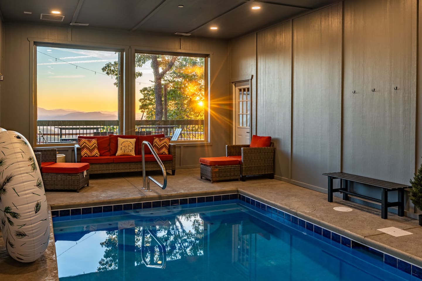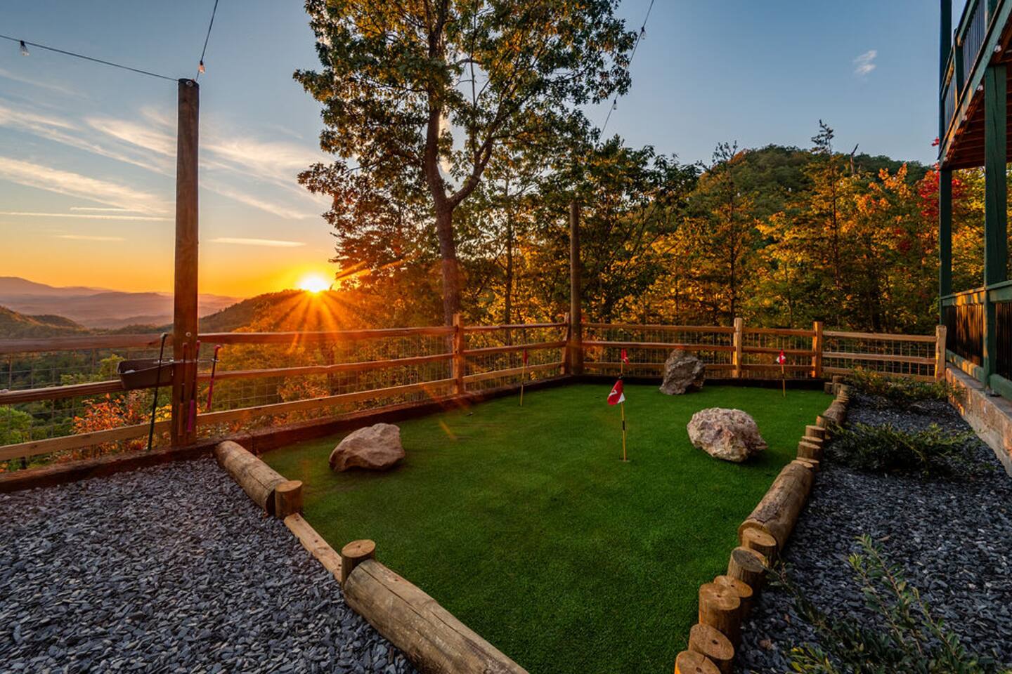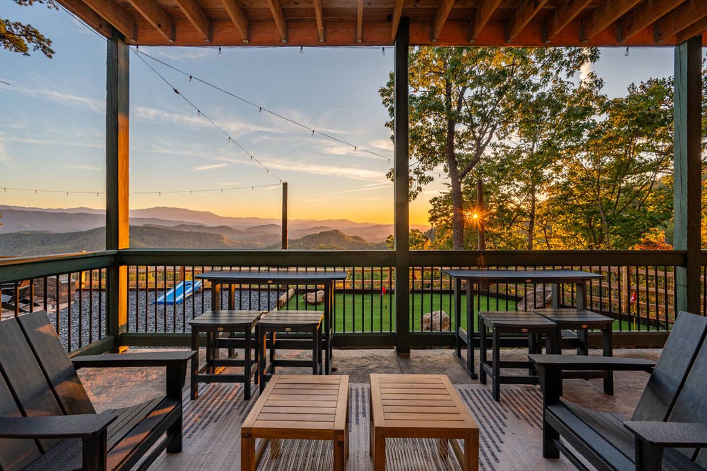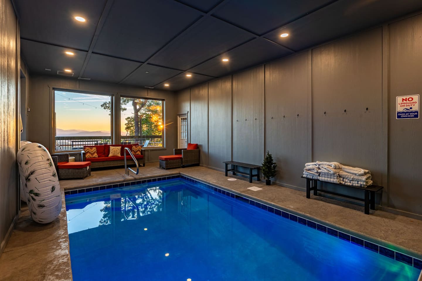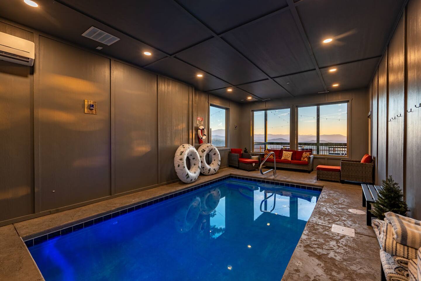 This is one of kind Custom Furnished Cabin with Mini Golf , Outdoor Fire Pit overlooking 30 peaks English Mountain. Easy access to all actions of Douglas Lake (10 miles), Dollywood (17 miles), Pigeon Forge Parkway (20 Miles) Gatlinburg (20 miles) from our Brand New Million-dollar heated indoor pool cabin with Mini golf. Guests will have plenty of addictive entertainments like Theatre, Arcade games, Puzzle games, Pool Table.