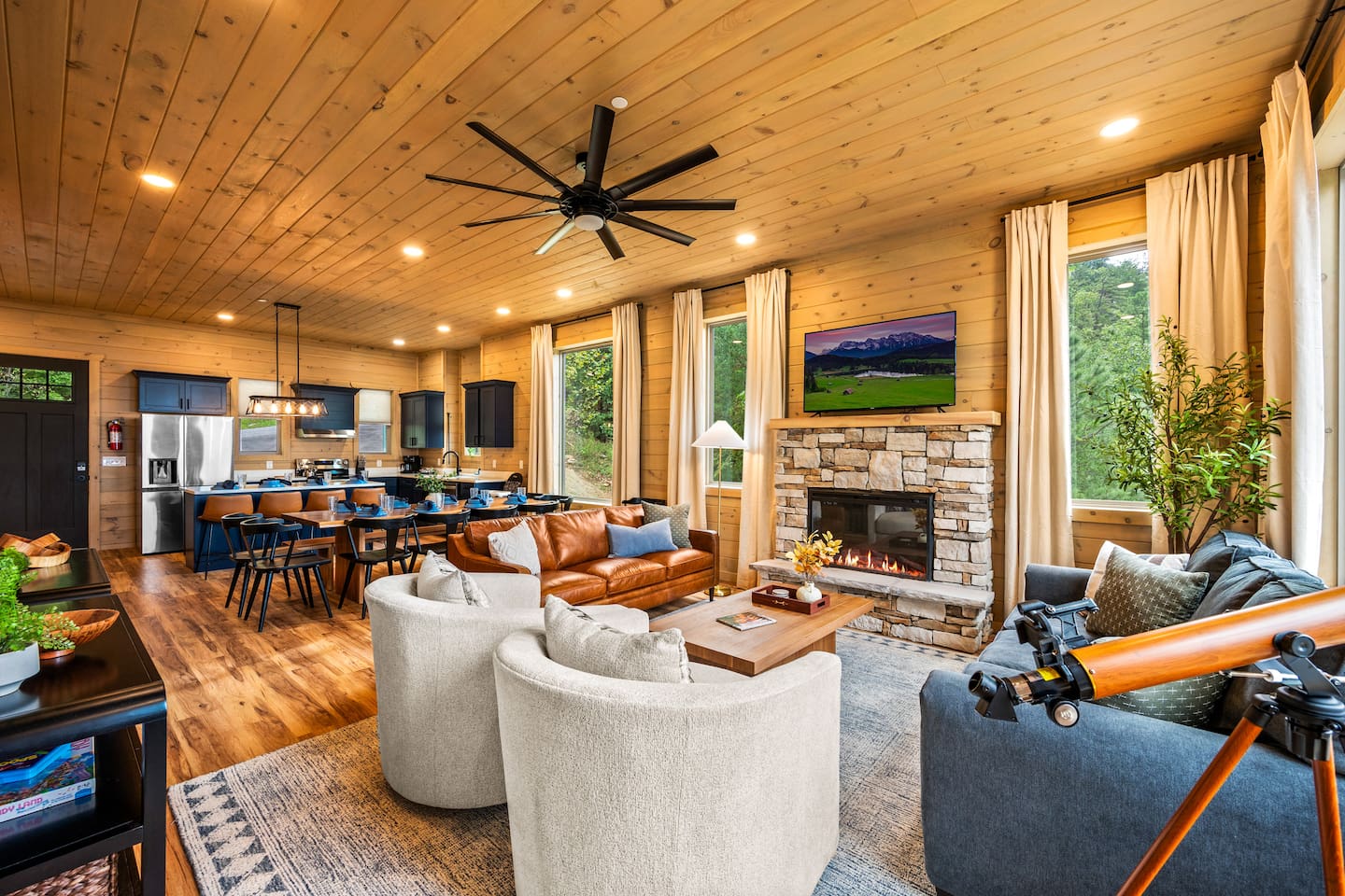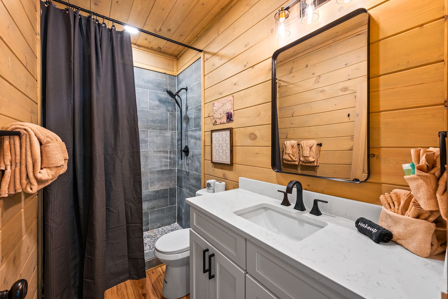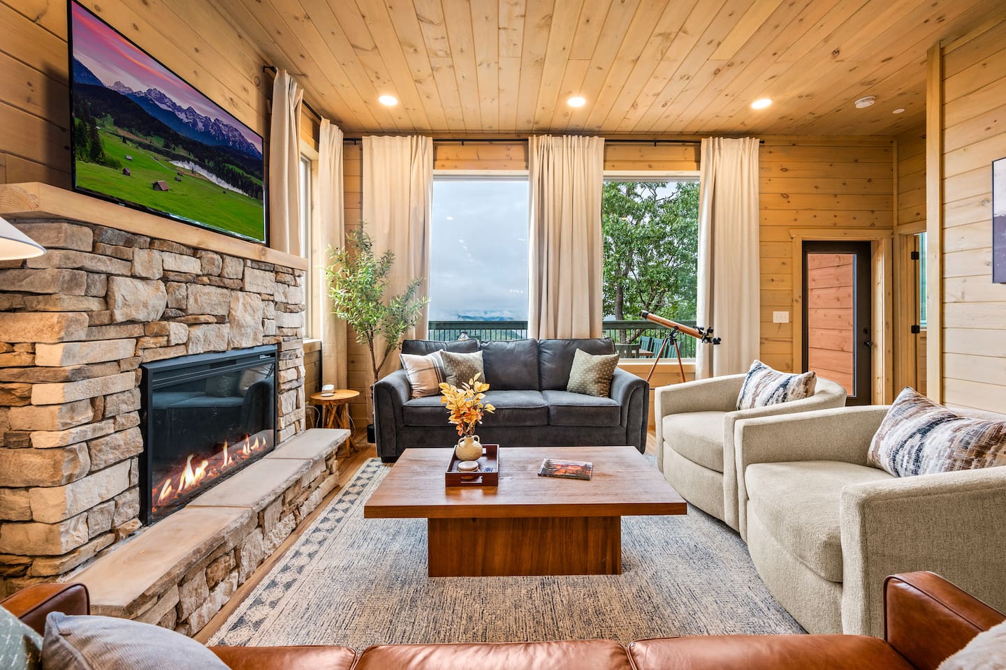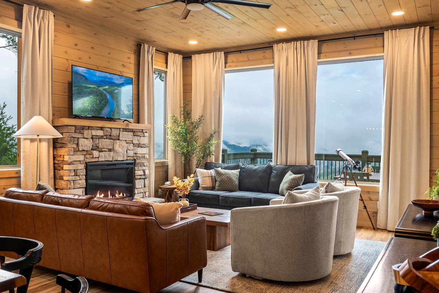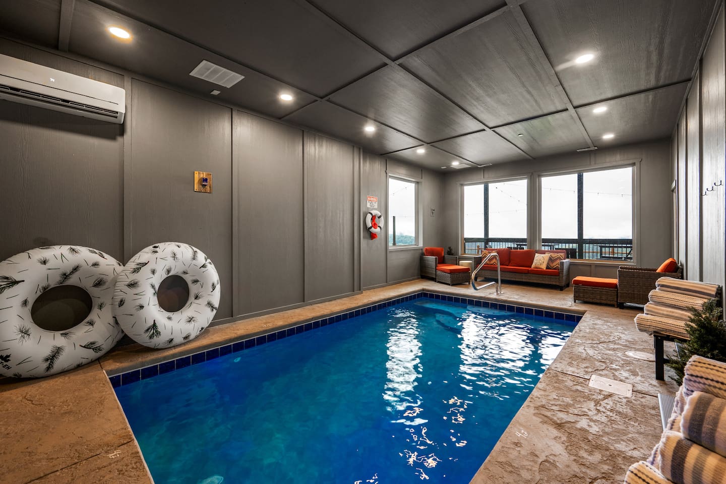 This is one of kind Custom Furnished Cabin with Mini Golf , Outdoor Fire Pit overlooking 30 peaks English Mountain. Easy access to all actions of Douglas Lake (10 miles), Dollywood (17 miles), Pigeon Forge Parkway (20 Miles) Gatlinburg (20 miles) from our Brand New Million-dollar heated indoor pool cabin with Mini golf. Guests will have plenty of addictive entertainments like Theatre, Arcade games, Puzzle games, Pool Table.