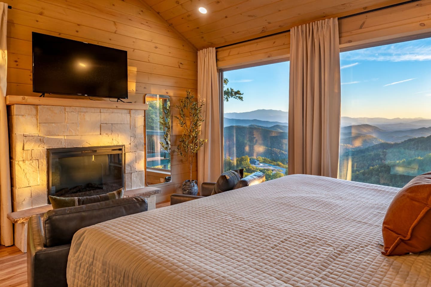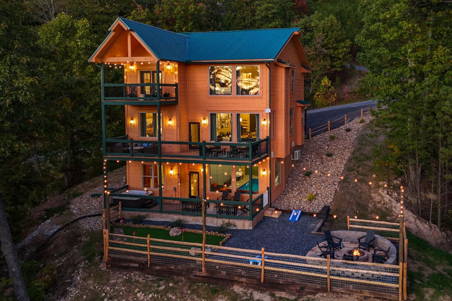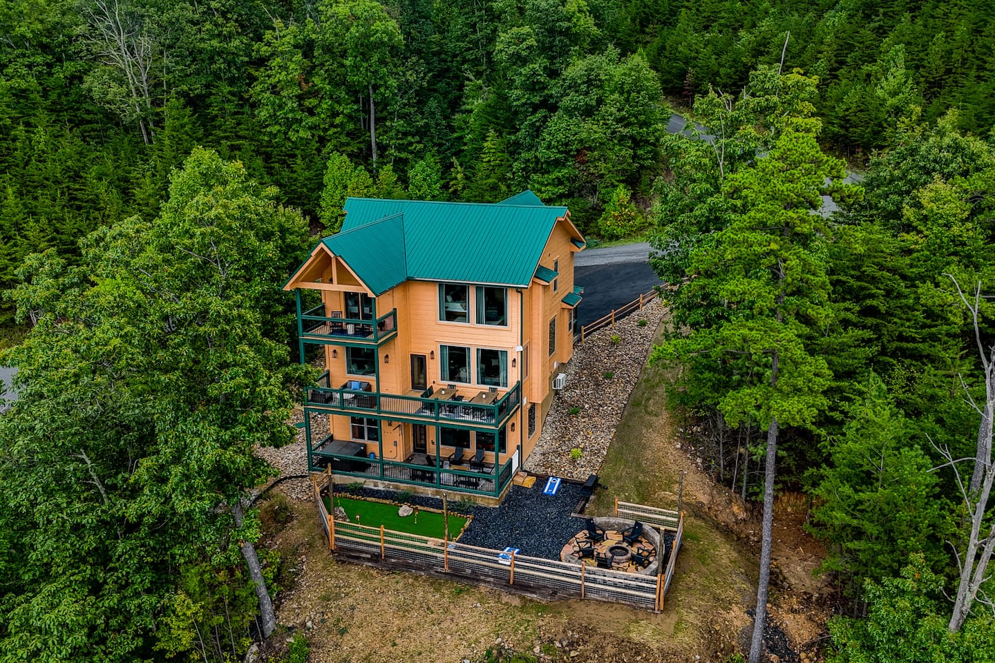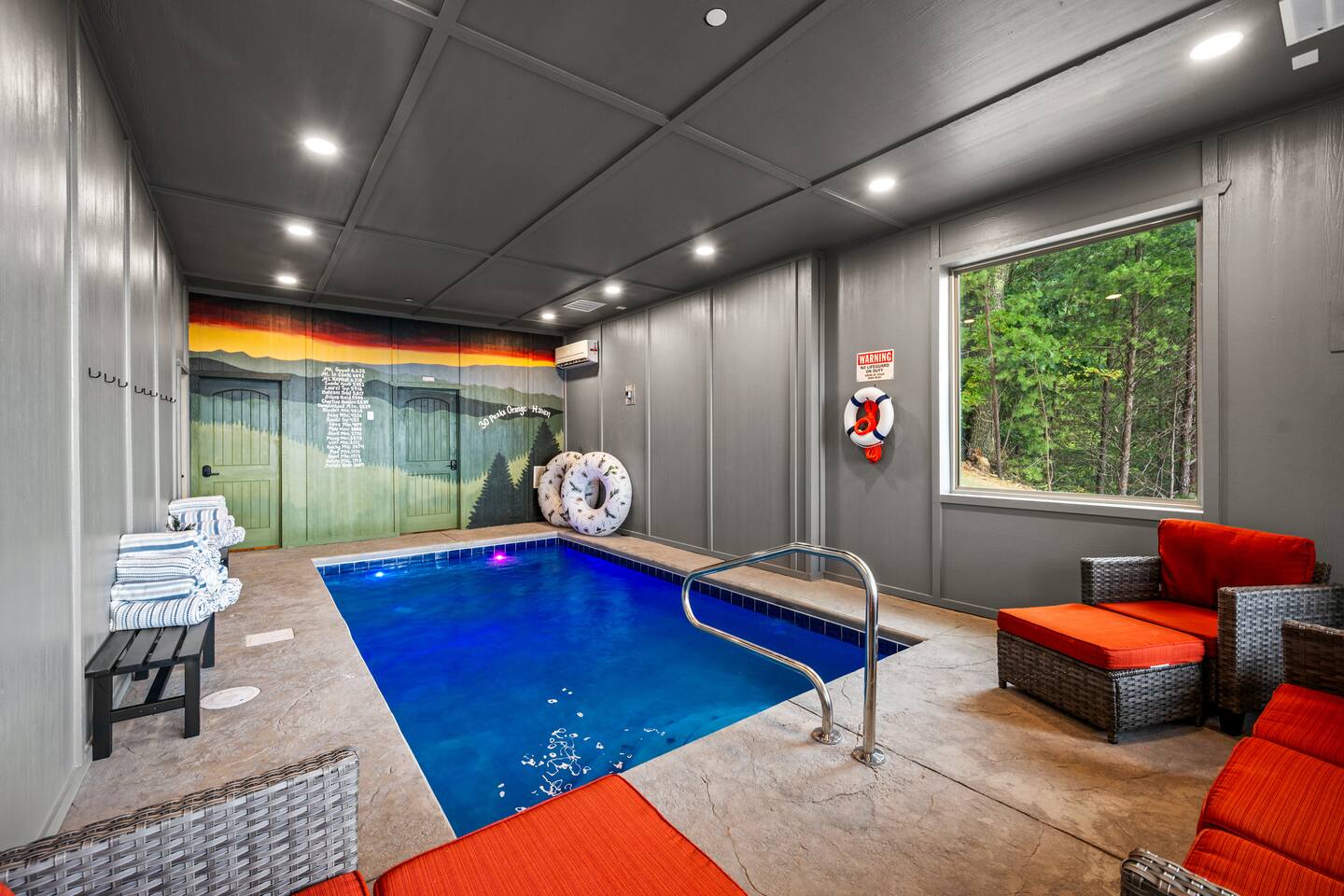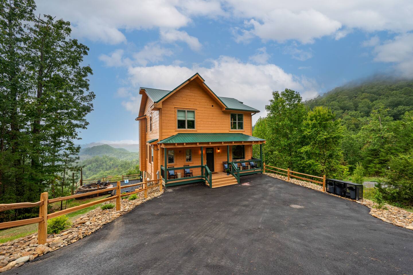 Welcome to 30 Peaks Orange Heaven Cabin at the Preserve on English Mountain Gated Community! Escape to the serene beauty of English Mountain in this cozy, rustic cabin that combines modern comforts with nature’s tranquility. Nestled in the heart of the Smoky Mountains, this getaway offers breathtaking views of 30 mountain peaks that surround you in every direction, with glorious sunsets casting an orange glow over the landscape—hence the name, "Orange Heaven." Highlights: ✨ Accommodates up to 20 Lucky Guests ✨ Experience total seclusion, surrounded by the stunning 30 Peaks Mountain range with no neighbors in sight. ✨ Heated private indoor pool with a depth ranging from 4 to 6 feet. ✨ 6 King Beds, 7 Bathrooms (Everyone gets their space!) ✨ 2 Queen over Queen Bunk Beds ✨ 100 inch TV for Movie Watching 🍿 ✨ Arcade Games in the Game Room 🎮 ✨ 5 Dedicated parking spots in front of the Cabin🚗 ✨2800 sq ft Comfortable Bedrooms for a Restful Stay ☀☀ First Bedroom King bed (Second Level -Sleeps 2) with a balcony overlooking the mountain views with an attached full bathroom. ☀☀ Second Bedroom King bed (Second Level -Sleeps 2) with a Fire Place and Mountain views from Bedroom. ☀☀ Third Bedroom King Bed (Second Level sleeps 2): with an attached full bathroom. ☀☀ Fourth Bedroom 2 queen over queen bunk beds (Second Level sleeps 4): with an attached full bathroom. ☀☀ Fifth Bedroom King Bed (Main Level sleeps 2): with an attached full bathroom. ☀☀ Six Bedroom King Bed (Main Level Sleeps 2): with a shared common bathroom. ☀☀ Sixth Living room Sleeper Sofa (Top floor non-private- sleeps 2) with a shared common bathroom Highlights: Mountain Views: Stunning panoramic views of 30 peaks, especially vibrant at sunrise and sunset. Comfortable Accommodation: This cabin comfortably sleeps up to 20 guests, with 2 well-appointed bedrooms and a sleeper sofa. Outdoor Bliss: Enjoy a private deck with a hot tub, perfect for soaking in the views and relaxing under the stars. Cozy Interior: Open-concept living space with a fireplace, plush seating, and a fully equipped kitchen. Adventure Nearby: Perfect for outdoor lovers, you’ll find hiking, wildlife, and scenic drives just minutes away. Modern Amenities: Wi-Fi, smart TV, washer/dryer, and fully stocked kitchen for all your vacation needs. Whether you're looking for a romantic escape or a family adventure, 30 Peaks Orange Heaven Cabin offers the perfect blend of seclusion and convenience, all with the stunning backdrop of the Smoky Mountains. Book your stay today and experience mountain living at its finest! Don’t wait, Book Now and Your Holiday fun starts at our Cabin. WIFI: WIFI Available SECURITY CAMERA: We have a ring camera facing entrance of the cabin for security reasons. NO PETS: No pets allowed due to homeowner's severe allergies. If you sneak in a pet of any kind, you will be charged an additional $ 250, and you will be asked to leave NO EVENTS PARTIES allowed with prior approval from Owner Absolutely NO SMOKING MOUNTAINS: While our cabins are professionally treated by licensed pest control regularly, just remember you are staying in the woods and in untamed mountains. Like any other cabin, during your stay, you might encounter lady bugs, little critters so keeping doors and windows always closed will be of great help. FIRES: Absolutely no fires inside. unauthorized fires (including candles) will be charged $ 250 plus damages. Please note Outdoor fire pit is allowed. INDOOR POOL CLEANING: Pool cleaning happens after every guest leaving the cabin. REFUNDS: We do not offer refunds for Weather or Natural disasters Keywords: Gatlinburg, Pool, New, Pigeon forge, Cabins, Indoor, Mini Golf, Family, Kid friendly, Family Reunion Guest access The cabin is situated in the secluded, gated community of the Preserve on English Mountain. There is parking available in front of the cabin for up to five to six cars. During the winter months, an all-wheel drive vehicle is necessary to navigate the slope, which is not steep or dangerous."