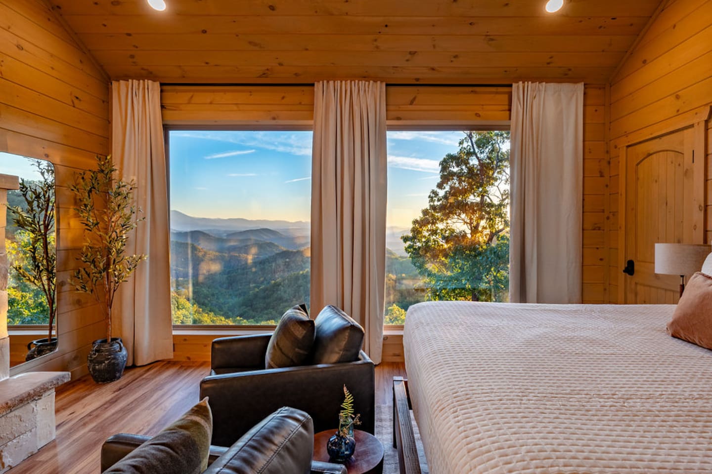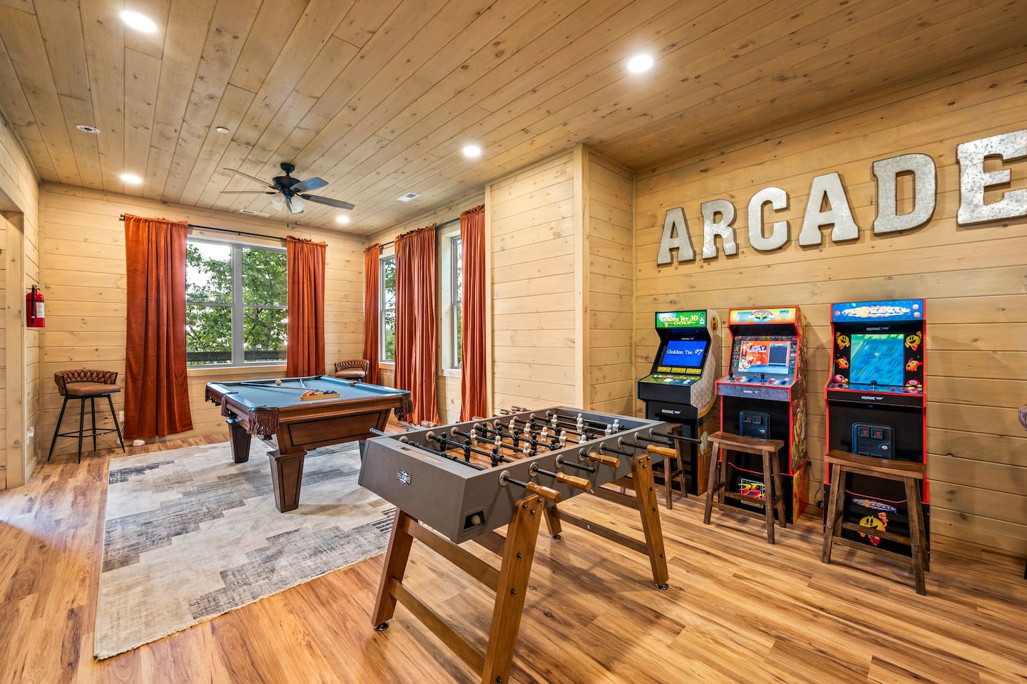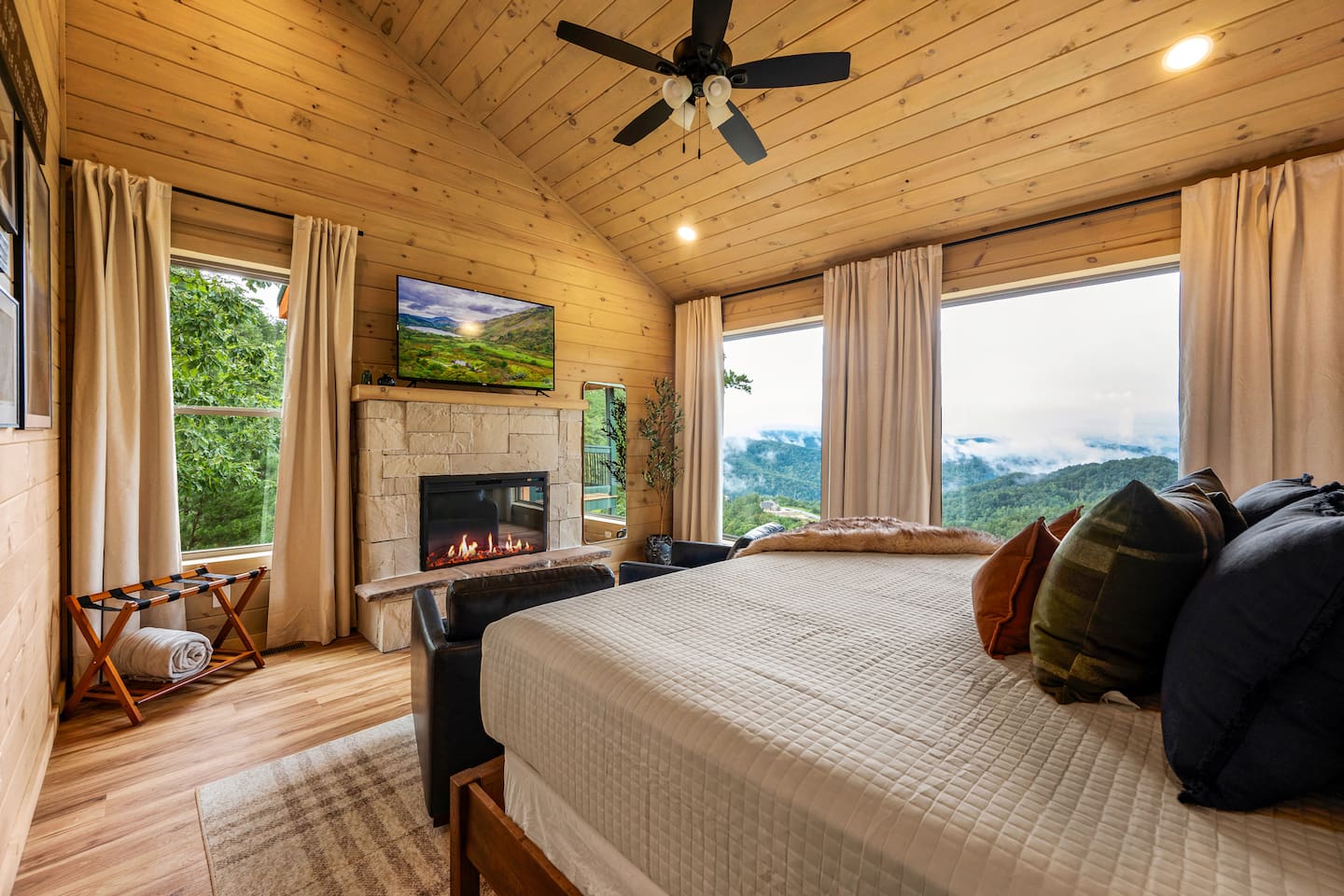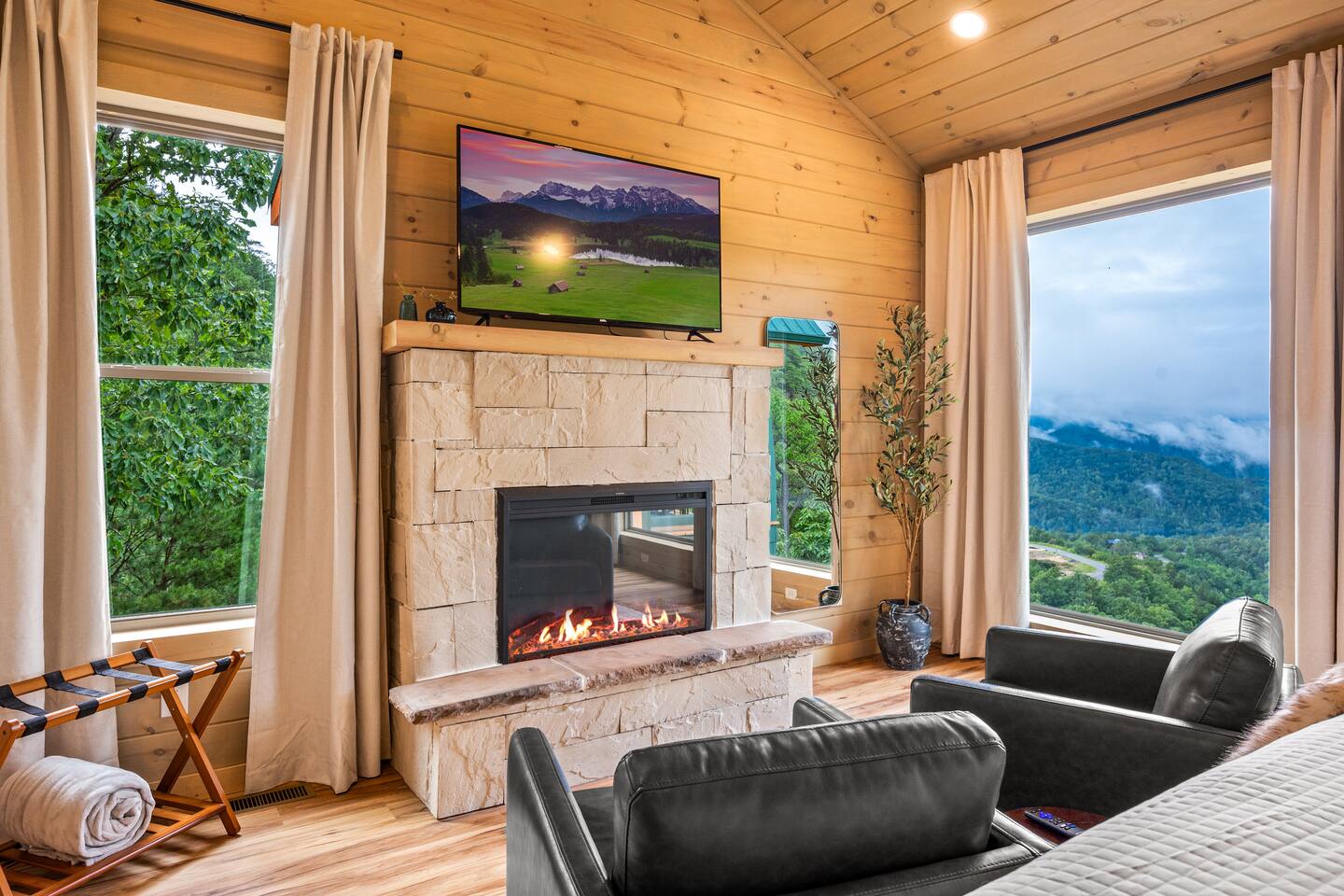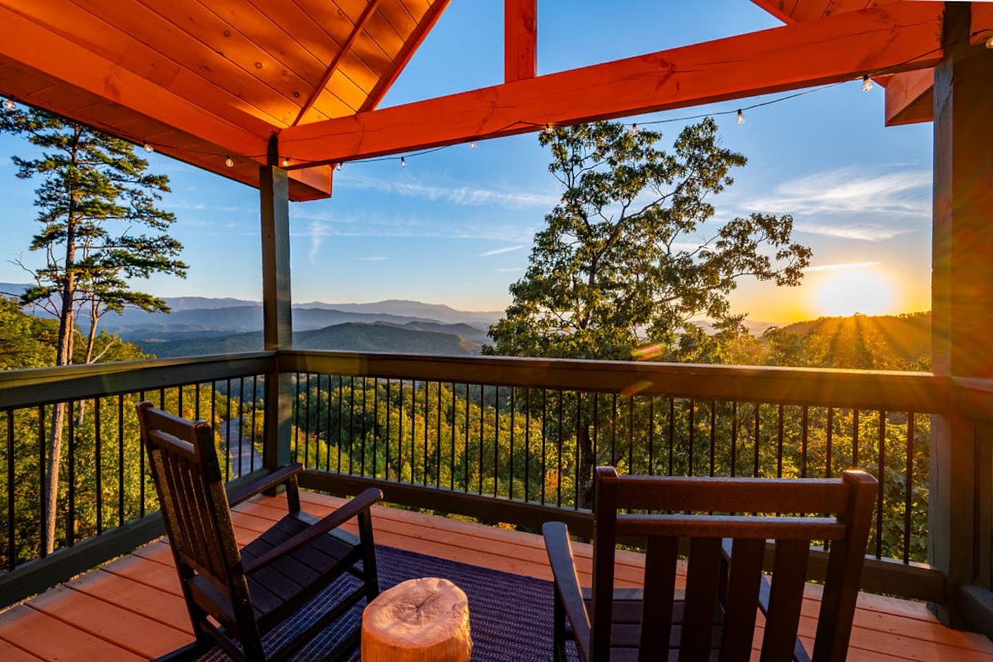 Welcome to 30 Peaks Orange Heaven Cabin at the Preserve on English Mountain Gated Community! Escape to the serene beauty of English Mountain in this cozy, rustic cabin that combines modern comforts with nature’s tranquility. Nestled in the heart of the Smoky Mountains, this getaway offers breathtaking views of 30 mountain peaks that surround you in every direction, with glorious sunsets casting an orange glow over the landscape—hence the name, "Orange Heaven." Highlights: ✨ Accommodates up to 20 Lucky Guests ✨ Experience total seclusion, surrounded by the stunning 30 Peaks Mountain range with no neighbors in sight. ✨ Heated private indoor pool with a depth ranging from 4 to 6 feet. ✨ 6 King Beds, 7 Bathrooms (Everyone gets their space!) ✨ 2 Queen over Queen Bunk Beds ✨ 100 inch TV for Movie Watching 🍿 ✨ Arcade Games in the Game Room 🎮 ✨ 5 Dedicated parking spots in front of the Cabin🚗 ✨2800 sq ft Comfortable Bedrooms for a Restful Stay ☀☀ First Bedroom King bed (Second Level -Sleeps 2) with a balcony overlooking the mountain views with an attached full bathroom. ☀☀ Second Bedroom King bed (Second Level -Sleeps 2) with a Fire Place and Mountain views from Bedroom. ☀☀ Third Bedroom King Bed (Second Level sleeps 2): with an attached full bathroom. ☀☀ Fourth Bedroom 2 queen over queen bunk beds (Second Level sleeps 4): with an attached full bathroom. ☀☀ Fifth Bedroom King Bed (Main Level sleeps 2): with an attached full bathroom. ☀☀ Six Bedroom King Bed (Main Level Sleeps 2): with a shared common bathroom. ☀☀ Sixth Living room Sleeper Sofa (Top floor non-private- sleeps 2) with a shared common bathroom Highlights: Mountain Views: Stunning panoramic views of 30 peaks, especially vibrant at sunrise and sunset. Comfortable Accommodation: This cabin comfortably sleeps up to 20 guests, with 2 well-appointed bedrooms and a sleeper sofa. Outdoor Bliss: Enjoy a private deck with a hot tub, perfect for soaking in the views and relaxing under the stars. Cozy Interior: Open-concept living space with a fireplace, plush seating, and a fully equipped kitchen. Adventure Nearby: Perfect for outdoor lovers, you’ll find hiking, wildlife, and scenic drives just minutes away. Modern Amenities: Wi-Fi, smart TV, washer/dryer, and fully stocked kitchen for all your vacation needs. Whether you're looking for a romantic escape or a family adventure, 30 Peaks Orange Heaven Cabin offers the perfect blend of seclusion and convenience, all with the stunning backdrop of the Smoky Mountains. Book your stay today and experience mountain living at its finest! Don’t wait, Book Now and Your Holiday fun starts at our Cabin. WIFI: WIFI Available SECURITY CAMERA: We have a ring camera facing entrance of the cabin for security reasons. NO PETS: No pets allowed due to homeowner's severe allergies. If you sneak in a pet of any kind, you will be charged an additional $ 250, and you will be asked to leave NO EVENTS PARTIES allowed with prior approval from Owner Absolutely NO SMOKING MOUNTAINS: While our cabins are professionally treated by licensed pest control regularly, just remember you are staying in the woods and in untamed mountains. Like any other cabin, during your stay, you might encounter lady bugs, little critters so keeping doors and windows always closed will be of great help. FIRES: Absolutely no fires inside. unauthorized fires (including candles) will be charged $ 250 plus damages. Please note Outdoor fire pit is allowed. INDOOR POOL CLEANING: Pool cleaning happens after every guest leaving the cabin. REFUNDS: We do not offer refunds for Weather or Natural disasters Keywords: Gatlinburg, Pool, New, Pigeon forge, Cabins, Indoor, Mini Golf, Family, Kid friendly, Family Reunion Guest access The cabin is situated in the secluded, gated community of the Preserve on English Mountain. There is parking available in front of the cabin for up to five to six cars. During the winter months, an all-wheel drive vehicle is necessary to navigate the slope, which is not steep or dangerous."