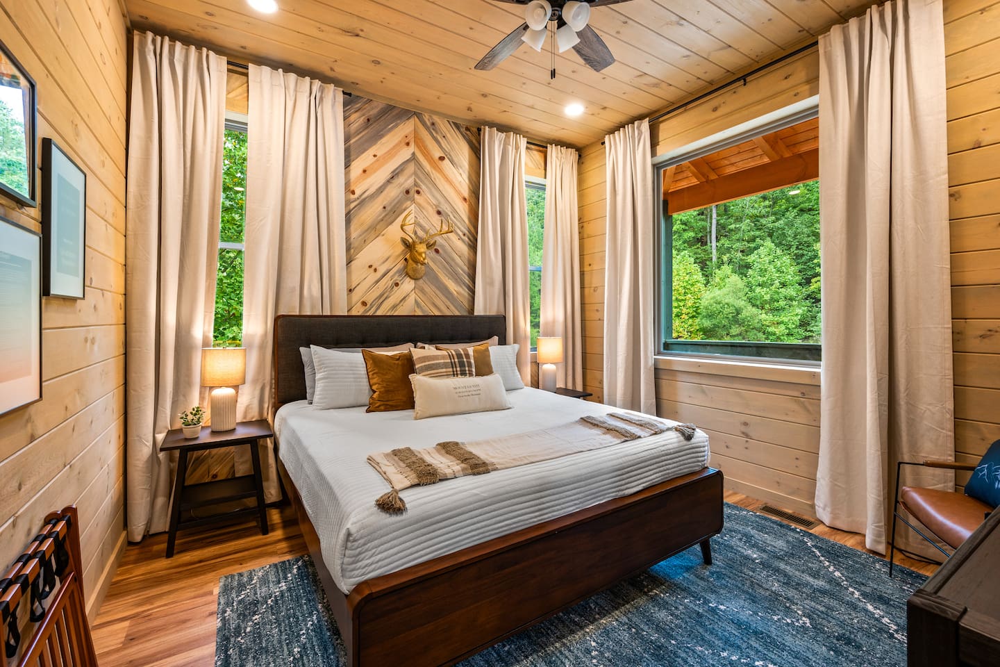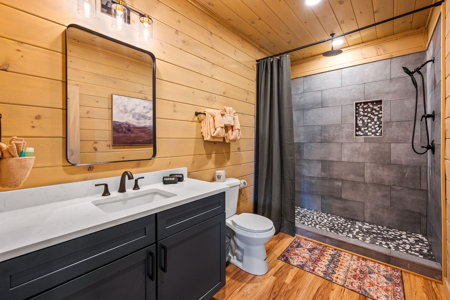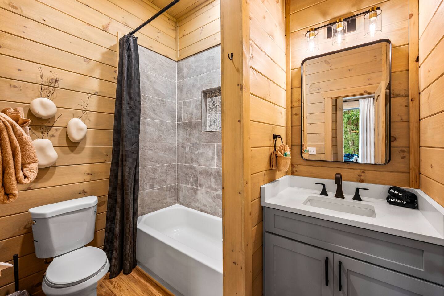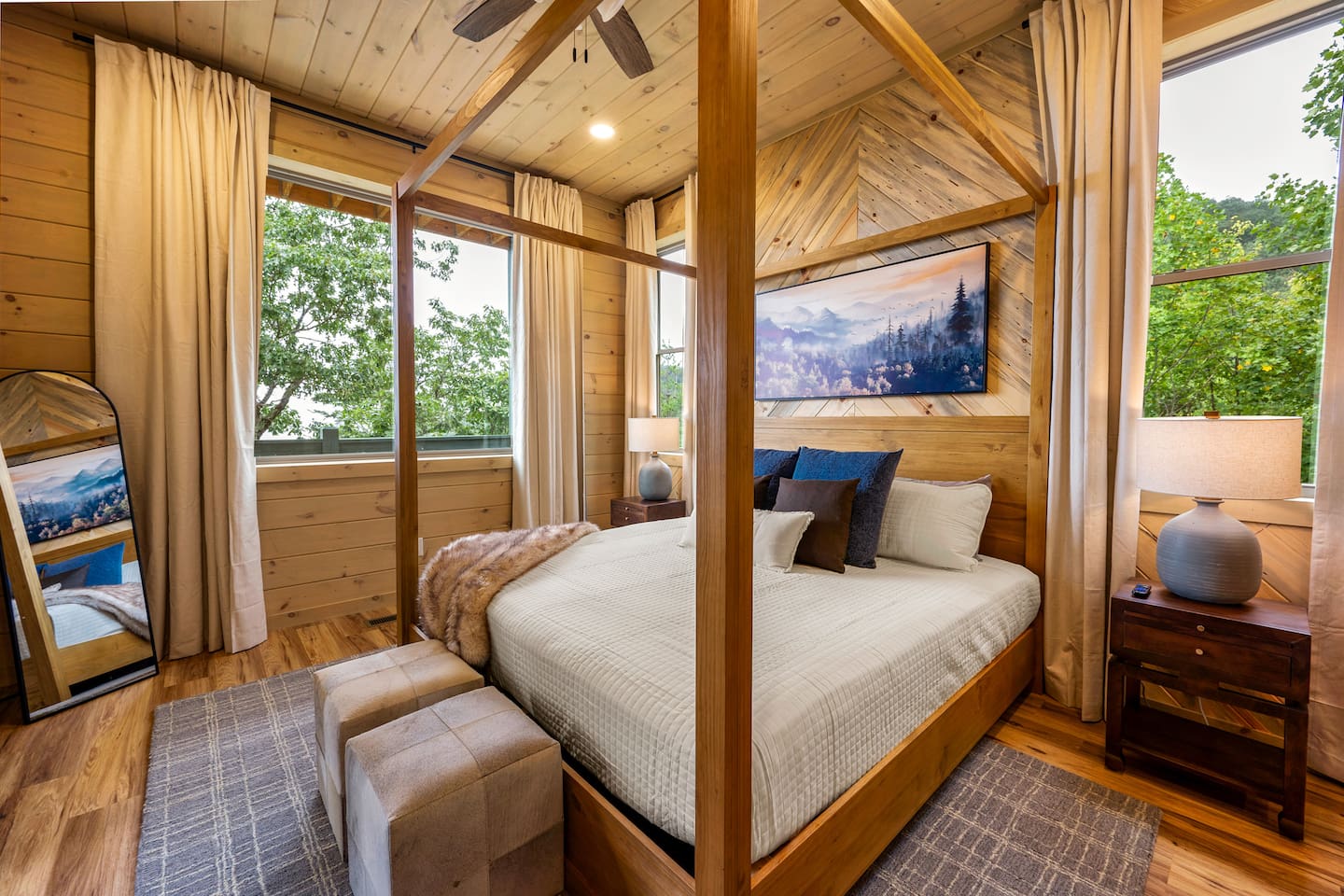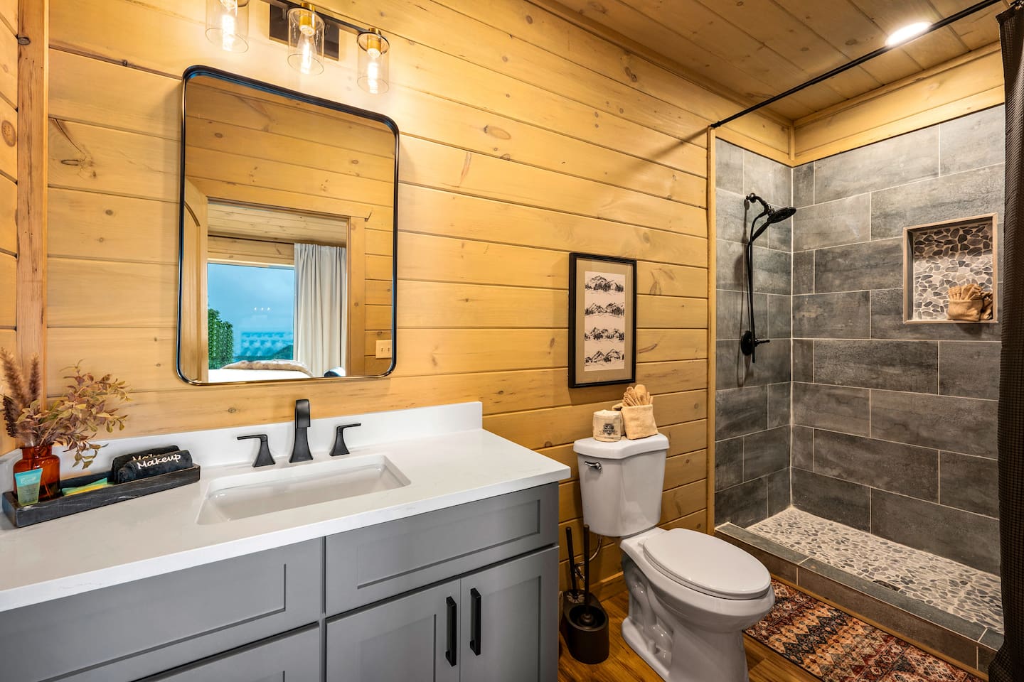 The cabin is situated in the secluded, gated community of the Preserve on English Mountain. There is parking available in front of the cabin for up to five to six cars. During the winter months, an all-wheel drive vehicle is necessary to navigate the slope, which is not steep or dangerous.