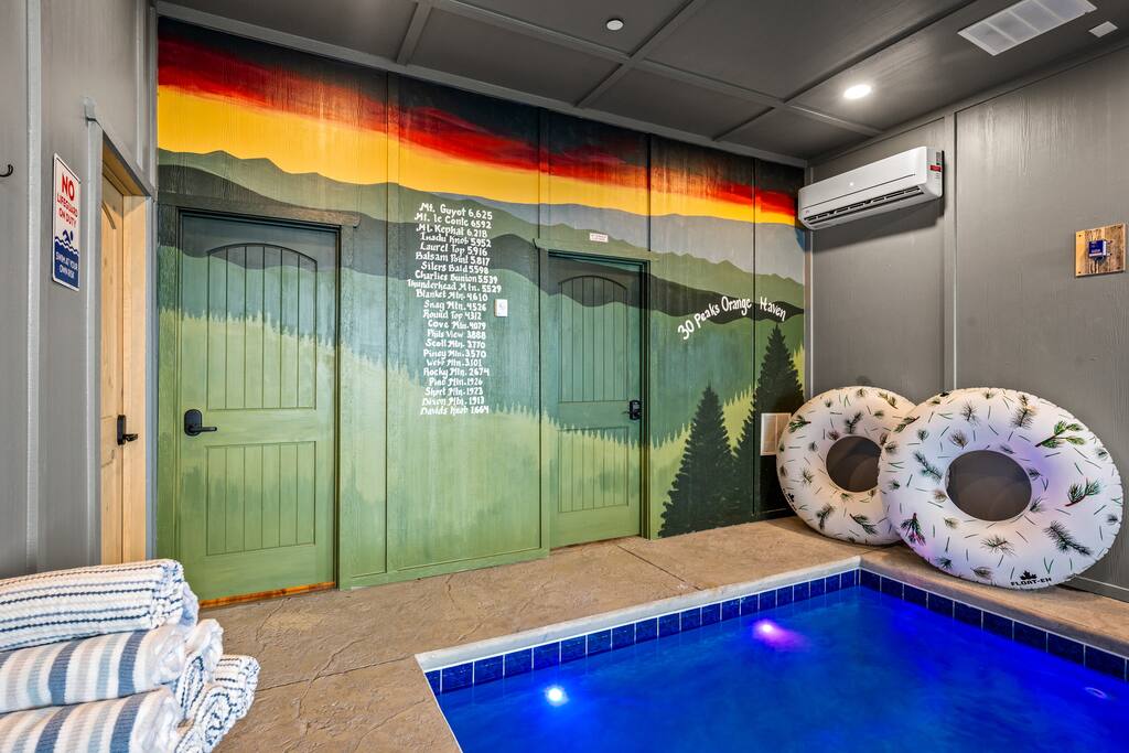 This is one of kind Custom Furnished Cabin with Mini Golf , Outdoor Fire Pit overlooking 30 peaks English Mountain. Easy access to all actions of Douglas Lake (10 miles), Dollywood (17 miles), Pigeon Forge Parkway (20 Miles) Gatlinburg (20 miles) from our Brand New Million-dollar heated indoor pool cabin with Mini golf. Guests will have plenty of addictive entertainments like Theatre, Arcade games, Puzzle games, Pool Table.
