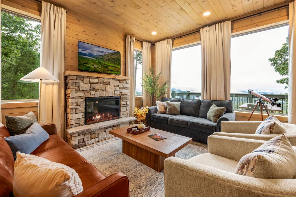 The cabin is situated in the secluded, gated community of the Preserve on English Mountain. There is parking available in front of the cabin for up to five to six cars. During the winter months, an all-wheel drive vehicle is necessary to navigate the slope, which is not steep or dangerous.
